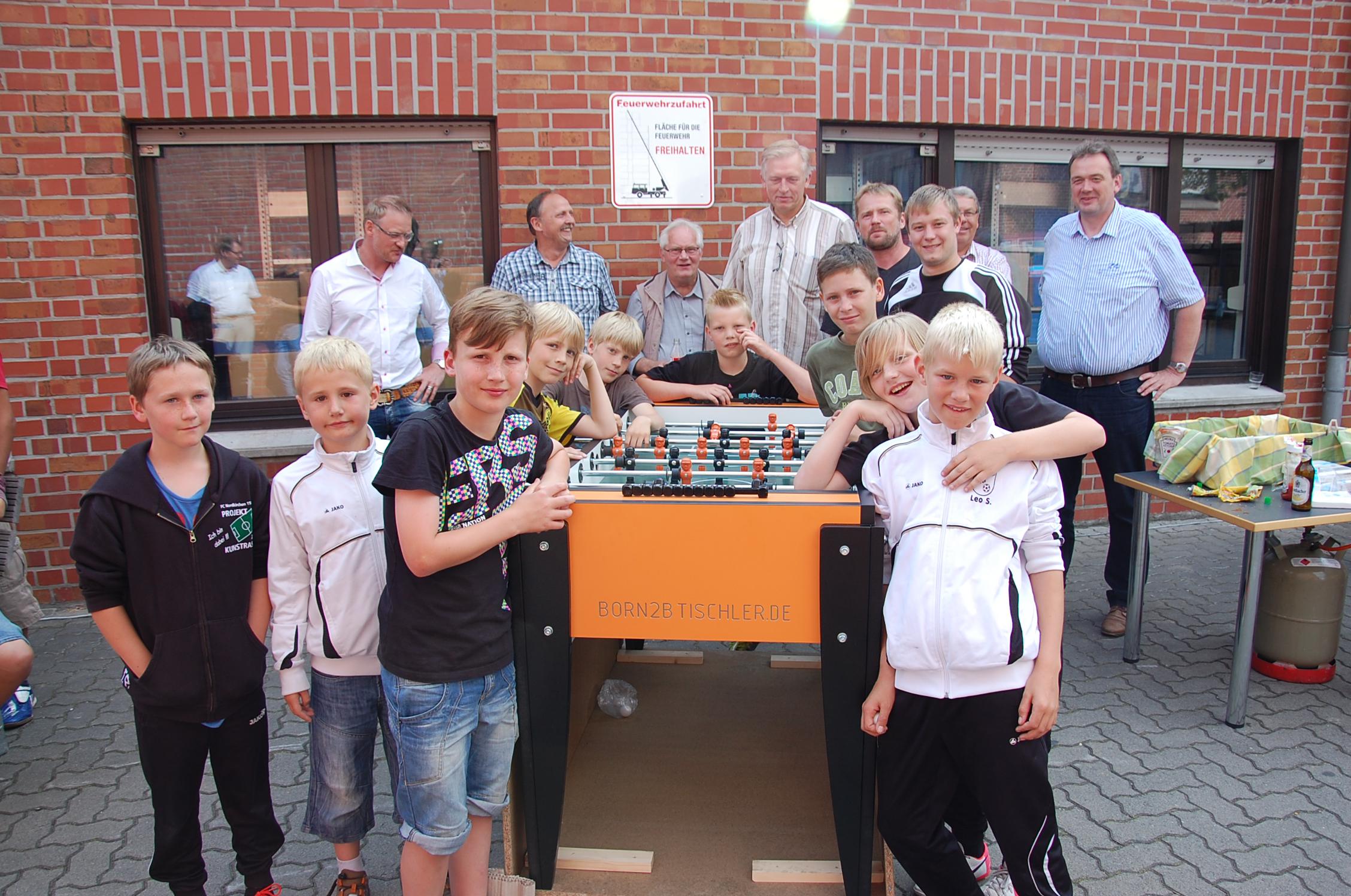 Bei dem dann folgendem Torwandschießen an dem auch die beiden anderen Vereine aus Herbern und Haus-Dülmen teilnahmen, konnte sich der FC Nordkirchen durchsetzen, hier gelangen den Jugendlichen Mathis Scheele und Paul König die Treffer für den FC Nordkirchen,dies hatte sich gelohnt, denn als 1. Preis wurde von der Tischler-Innung Coesfeld ein Tischkicker im Wert von 1.000,- € zur Verfügung gestellt, den die Jugendlichen des FC Nordkirchen für ihr Clubheim mit nach Nordkirchen nehmen durften.