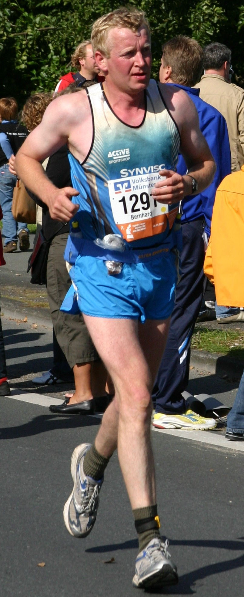 Das ist auch bei seinem Vereinskollegen Bernhard Lammers der Fall. Allerdings hat sich der Nordkirchener Marathoni auch schon auf anderen Strecken versucht, so etwa in Berlin bei Deutschlands mit Abstand größtem Lauf über die klassische Distanz. So kommt Lammers nunmehr auf insgesamt 25 Marathonläufe. Seine Bestzeit steht bei 3:24 Stunden. Aufgestellt hat er sie auf dem alten drei Runden-Kurs in Steinfurt. Nachdem der Läufer im Trikot des FCN im letzten Jahr ein wenig länger als gewöhnlich in Münster unterwegs war, hat Lammers in diesem Jahr wieder die 4 Stunden-Marke im Visier. Für seine Verhältnisse ist er im Training bislang außerordentlich fleißig gewesen und hat, anders als im Vorjahr, schon etliche lange Vorbereitungsläufe in den Beinen. Für seine Treue zum Münsteraner Marathon führt der in der Altersklasse M45 startberechtigte Athlet ganz ähnliche Gründe an wie Philipps. Neben dem Marathon in Münster hält Lammers einem weiteren Lauf-Klassiker des Münsterlandes die Treue. Seit 1996 hat er ohne Unterbrechung an den alle zwei Jahre ausgetragenen Riesenbecker Six Days teilgenommen, einem Etappenlauf über 140 km durch das Tecklenburger Land.